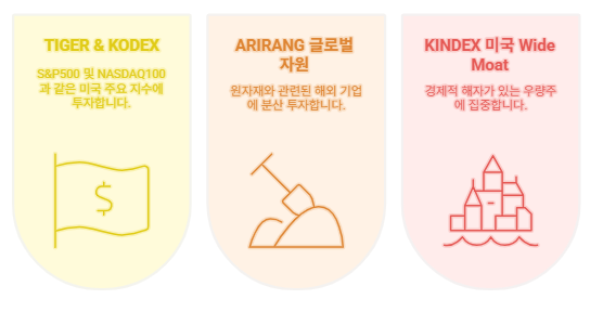 - TIGER 미국S&P500, KODEX 미국나스닥100: 미국 대표지수에 투자